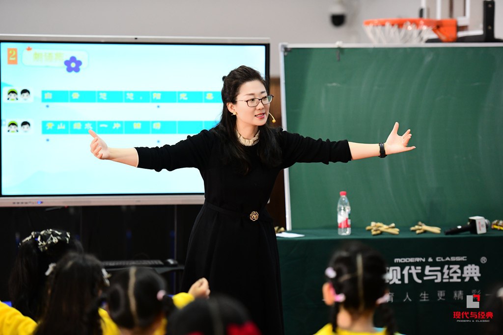 李老师的音乐观摩课围绕经典儿童歌曲展开,通过多元教学环节实现美育浸润。课程伊始,教师以“你熟悉这首歌吗”引导学生聆听思考,迅速激发兴趣。随后通过师生共演《郊游》,在律动坊中感受节奏,在朗诵苑里品味歌词,实现跨学科融合。